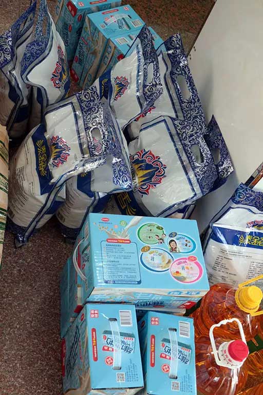 除了送中秋月餅,盛世家人考慮到老人不宜多吃月餅,于是貼心地送了大米,食用油,維他奶,咱盛世家人就是實在。