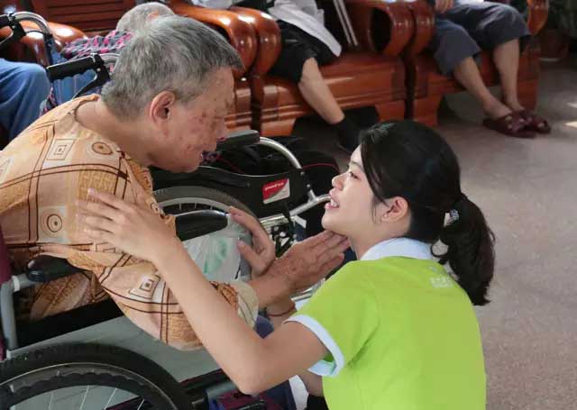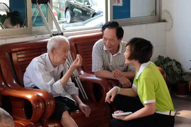 盛世家人在與一個年逾70的奶奶交談,老人高興地說道:“真是謝謝你們了,每到過節,你們都來看望我,陪我聊天,就像一家人,真的感到特別高興。”在親切的祝福問候中,老人們滄桑的臉上綻開了幸福的笑容,感激之情溢于言表。